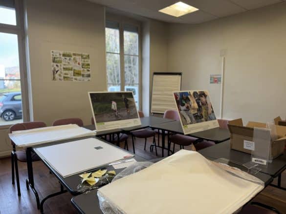 Après plusieurs mois d’échanges et de réflexion au sein du groupe de travail « Sortir », ponctués par 3 reportages photos et de nombreuses heures de préparation, nous avons enfin reçu les premiers panneaux de l’exposition « Premiers pas dehors » !