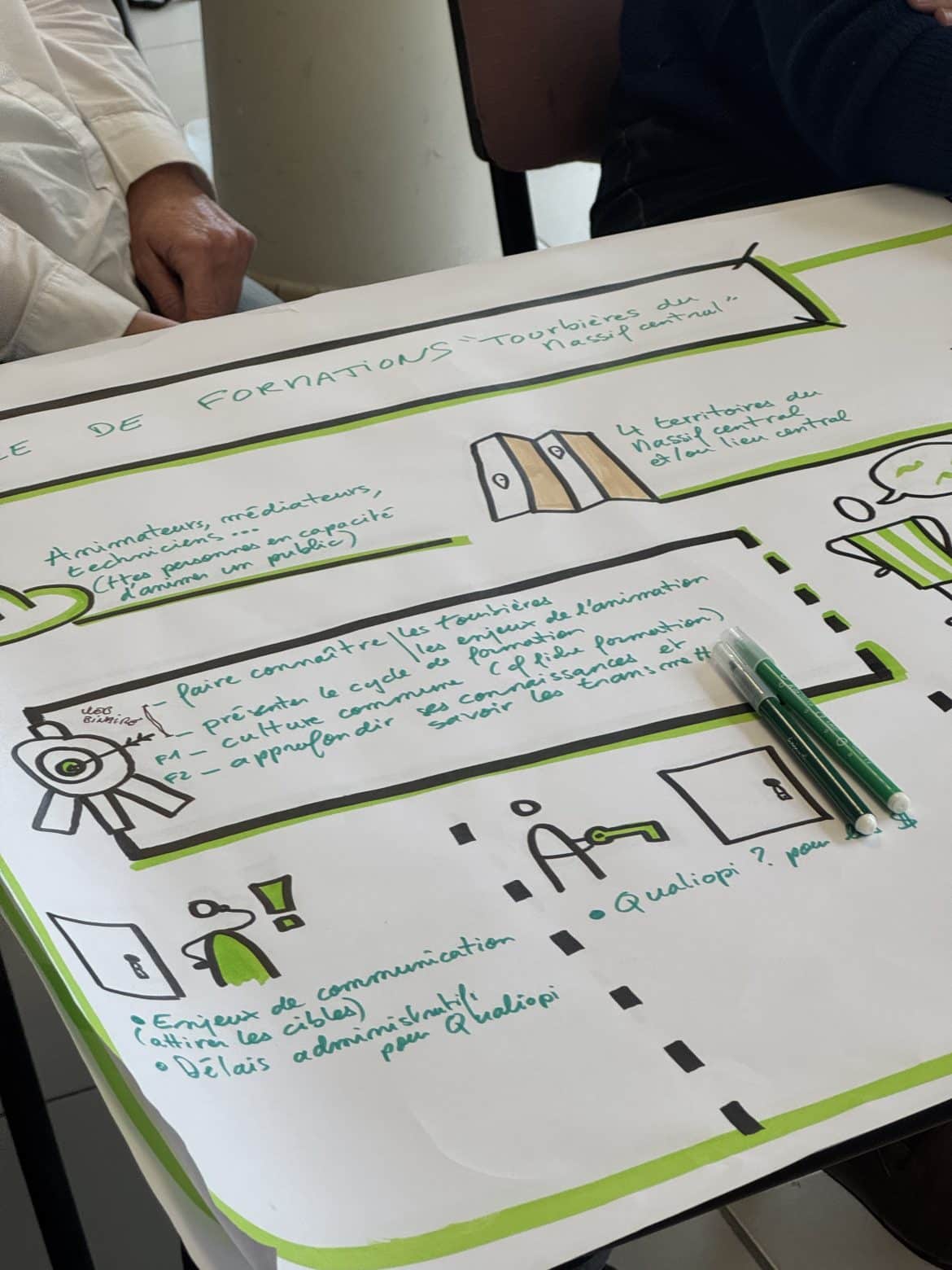 L’après-midi, les participants ont travaillé en trois groupes thématiques, accompagnés par les équipes du REEA et du Pôle relais tourbières, pour co-construire des fiches actions concrètes. Ces travaux collectifs contribueront à structurer le futur plan d’actions en faveur des tourbières du Massif Central, véritables réservoirs de biodiversité et puits de carbone essentiels pour nos territoires.