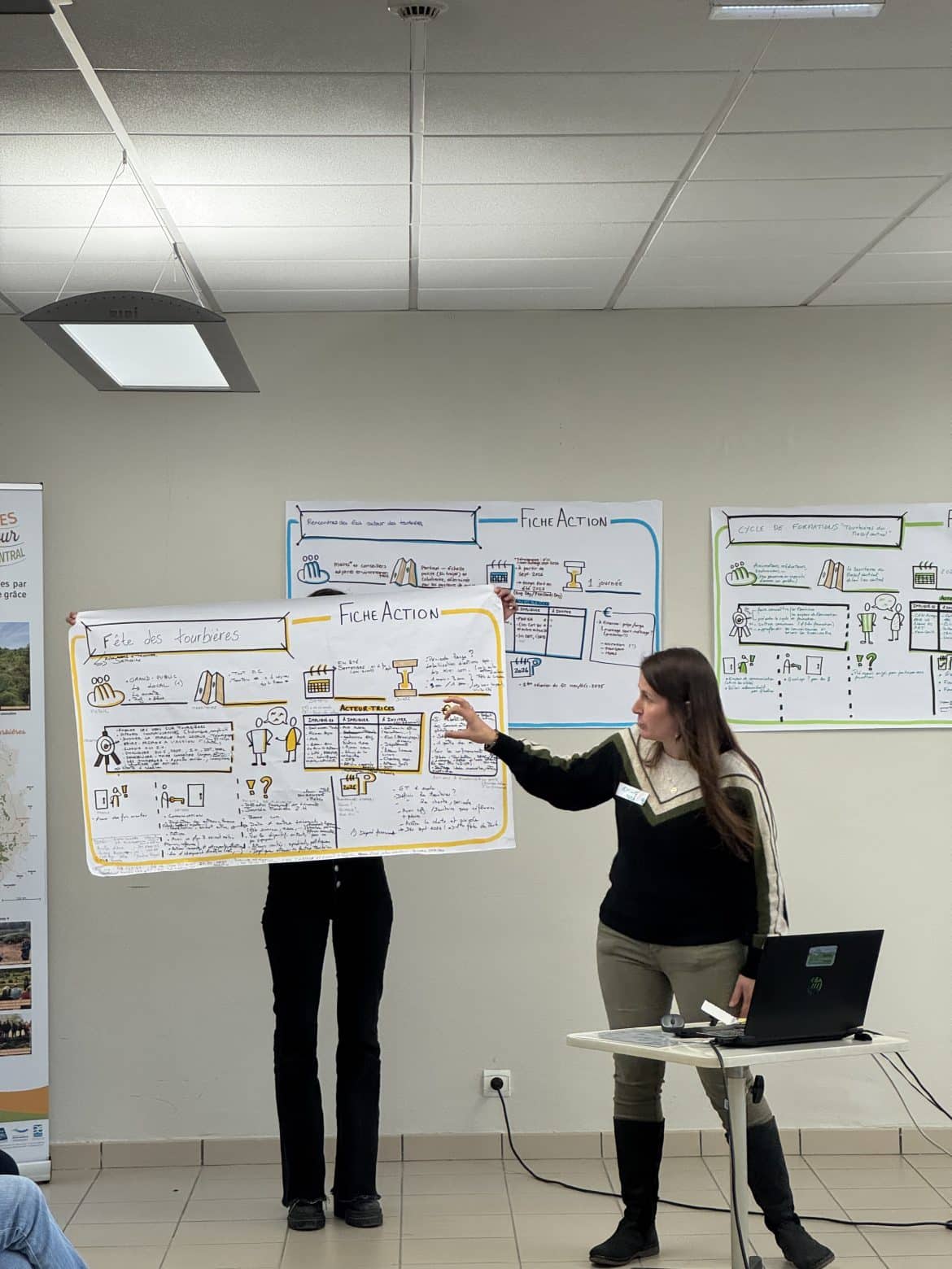 L’après-midi, les participants ont travaillé en trois groupes thématiques, accompagnés par les équipes du REEA et du Pôle relais tourbières, pour co-construire des fiches actions concrètes. Ces travaux collectifs contribueront à structurer le futur plan d’actions en faveur des tourbières du Massif Central, véritables réservoirs de biodiversité et puits de carbone essentiels pour nos territoires.