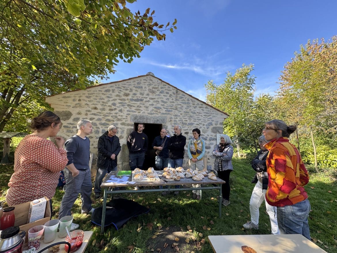Le samedi 18 octobre, une quinzaine d’habitants du Livradois se sont retrouvés à Fayet-le-Château pour un atelier de fabrication de pain au feu de bois, suivi d’un moment convivial de papote-grignote autour des produits locaux.